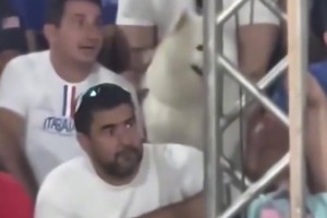 观看网球比赛的观众们,整齐划一的跟着网球轨迹摆头!