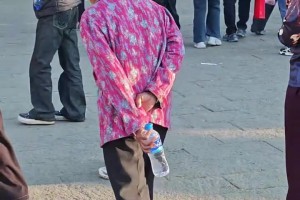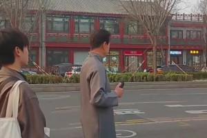 女子在街上偶遇老戏骨寇振海,身穿灰色长袍身形挺拔!