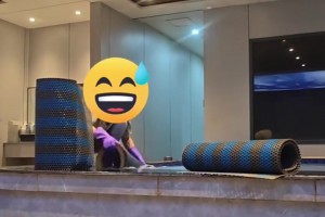 网友拍下工作人员清洗澡堂,直接将地垫放进池子里泡洗!